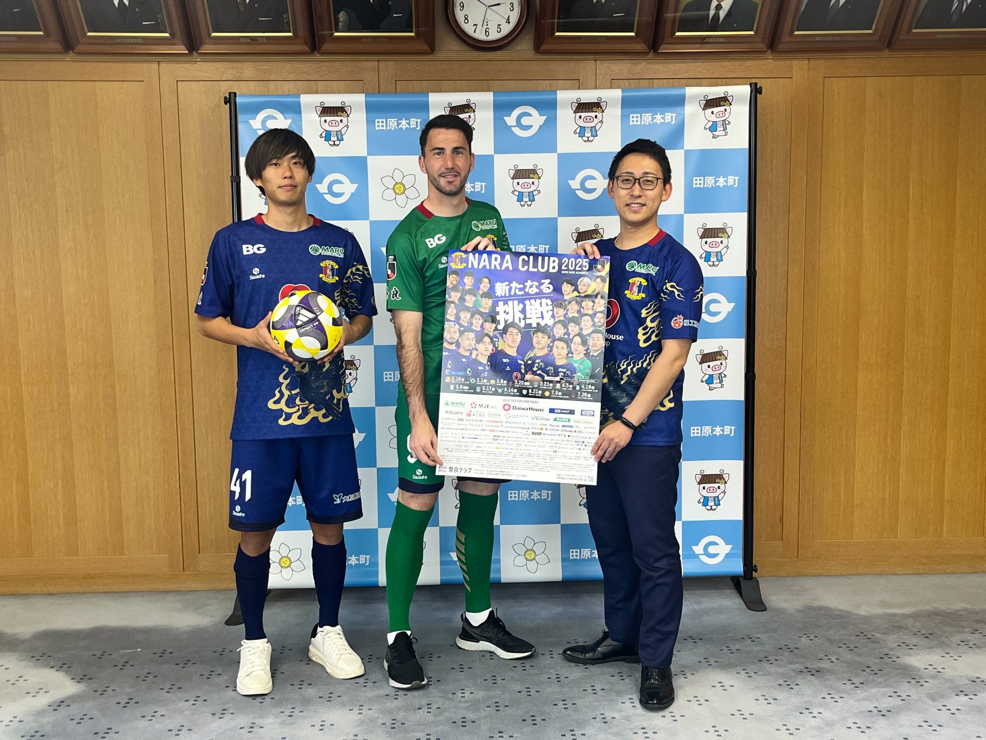 この度奈良クラブは、田原本町を森田凜選手・マルク・ヴィト選手が表敬し、高江町長に開幕を前に挨拶に伺いました。
