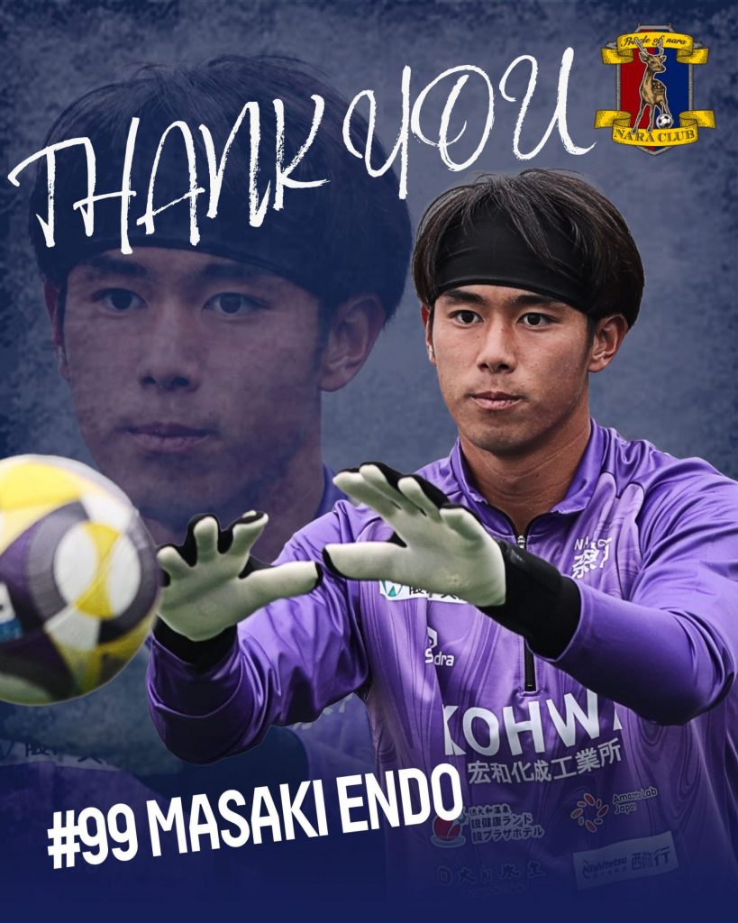 この度奈良クラブは、横浜FCから期限付き移籍中の遠藤雅己選手との契約について、2025シーズンをもって移籍期間満了となりますのでお知らせいたします。