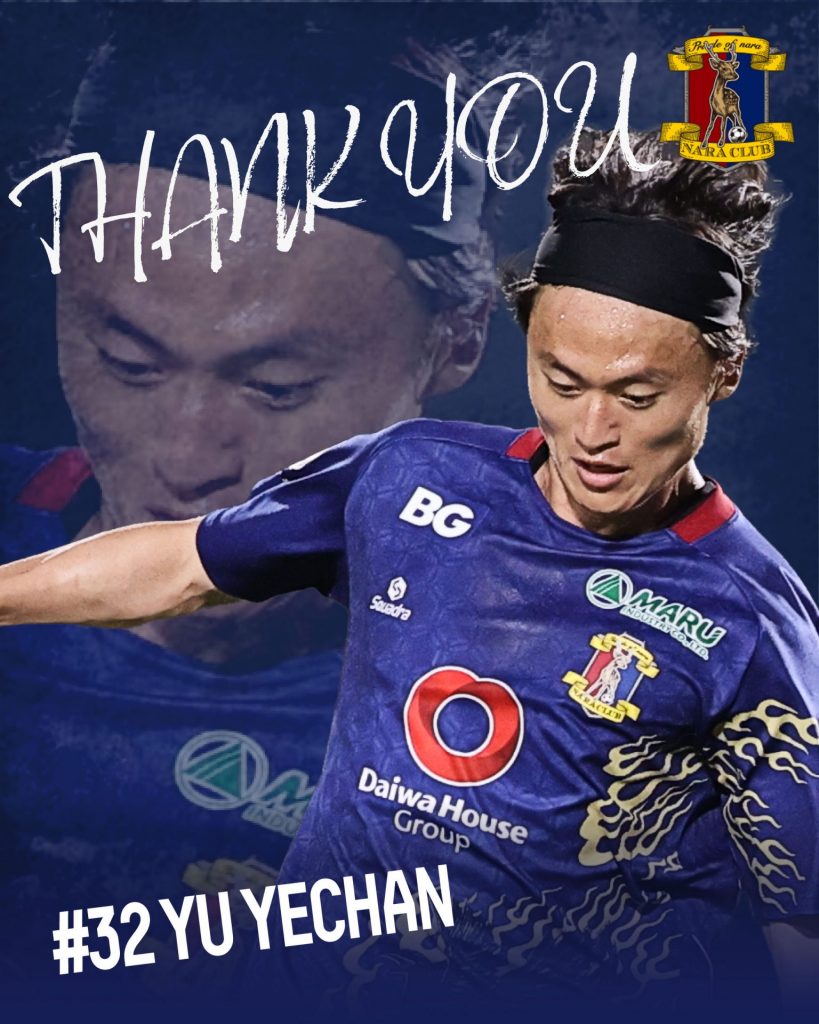 この度奈良クラブは、愛媛FCから期限付き移籍中のユイェチャン選手との契約について、2025シーズンをもって移籍期間満了となりますのでお知らせいたします。