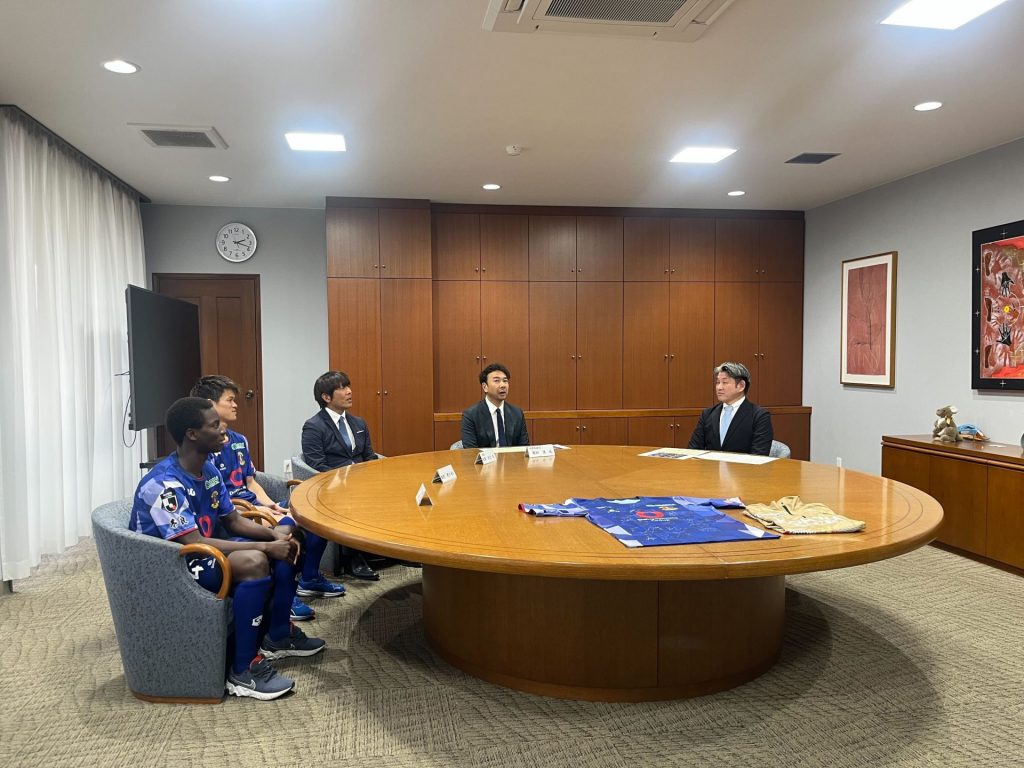 今シーズンは新加入選手も多く、大黒新監督の指揮の下、チーム一丸となって闘うことを誓い、仲川市長から「スタジアムも快適に楽しめるより良い環境に準備していますので、今年も活躍されることを期待しています。」と激励を頂きました。