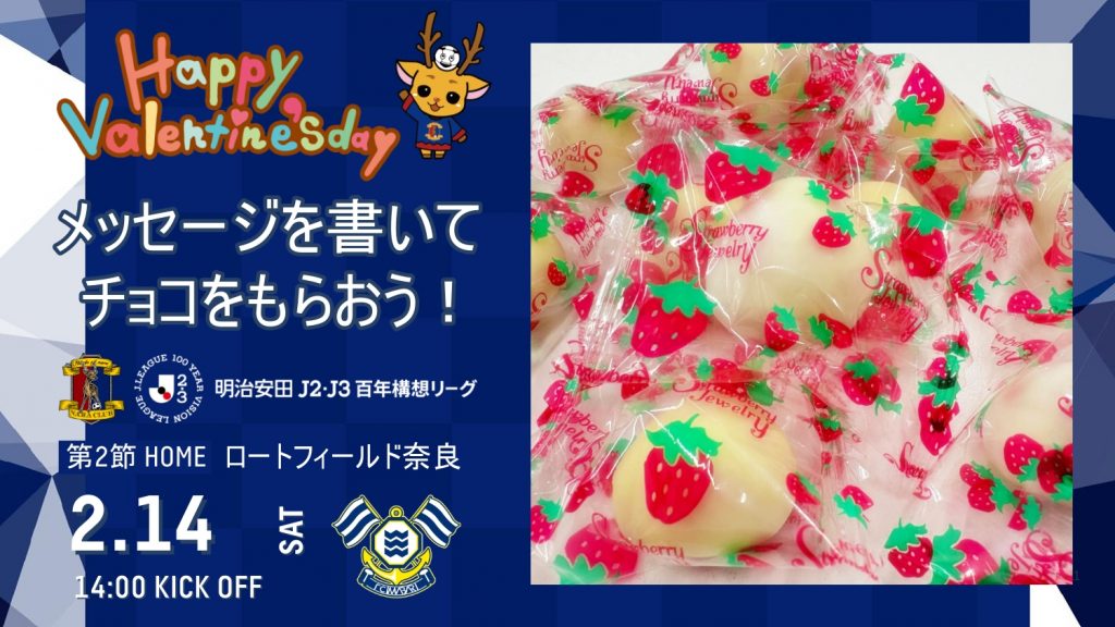 このたび、2026年2月14日(土)に行う明治安田J2・J3百年構想リーグ 第2節 FC今治戦にて、バレンタイン企画「Happy Valentine! 選手への応援メッセージを書いてチョコプレゼント」を行います。