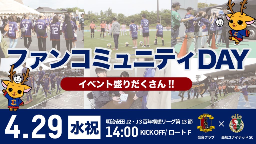 このたび、4月29日(水・祝)明治安田J2・J3百年構想リーグ第13節 高知ユナイテッドSC戦をファンコミュニティデーとして開催いたします。