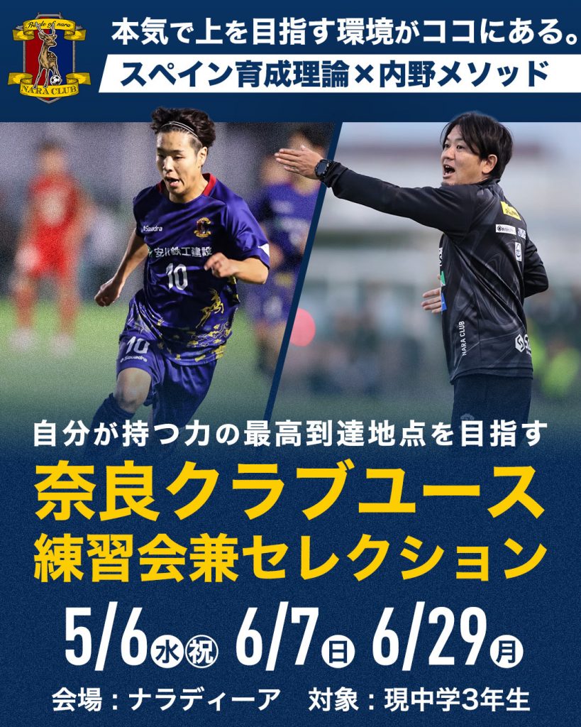 奈良クラブユース 2026年度 練習会兼一次セレクション概要