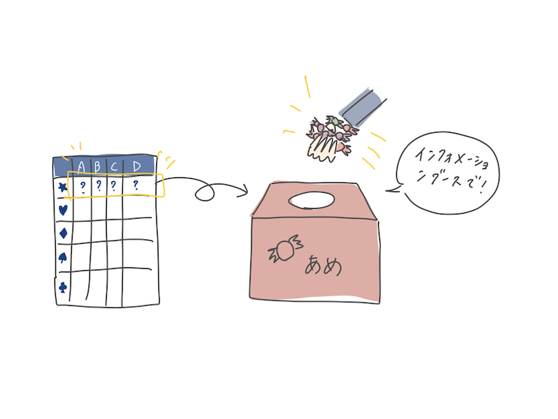 毎試合、4文字集めるとおかしのつかみ取りにチャレンジできるよ!