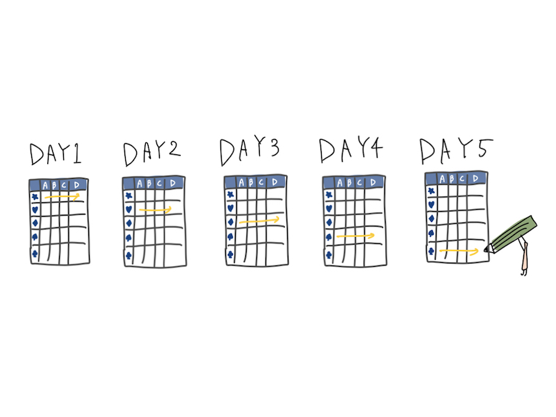 ⑥7試合で集めた文字を縦に読んでみよう!