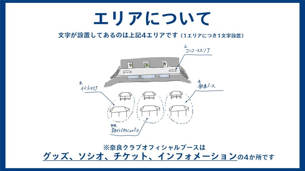 スタジアム場外、場内に散らばった「文字」を探そう!