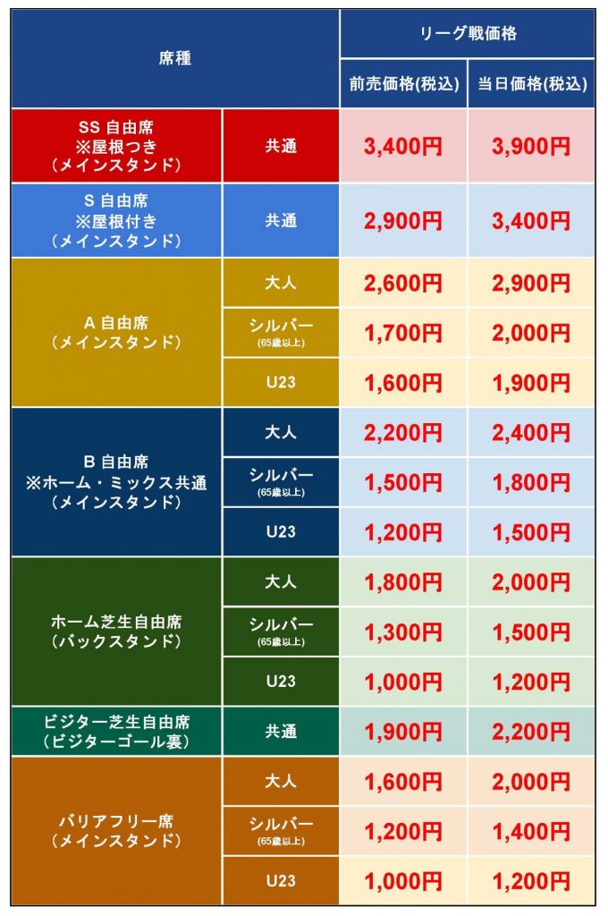 - ・Jリーグチケットにてご購入いただけます。当日価格となります。